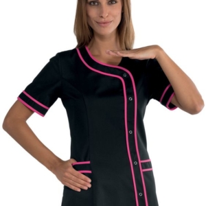 chaquetas medicas para mujer negra combinada con lineas rosadas